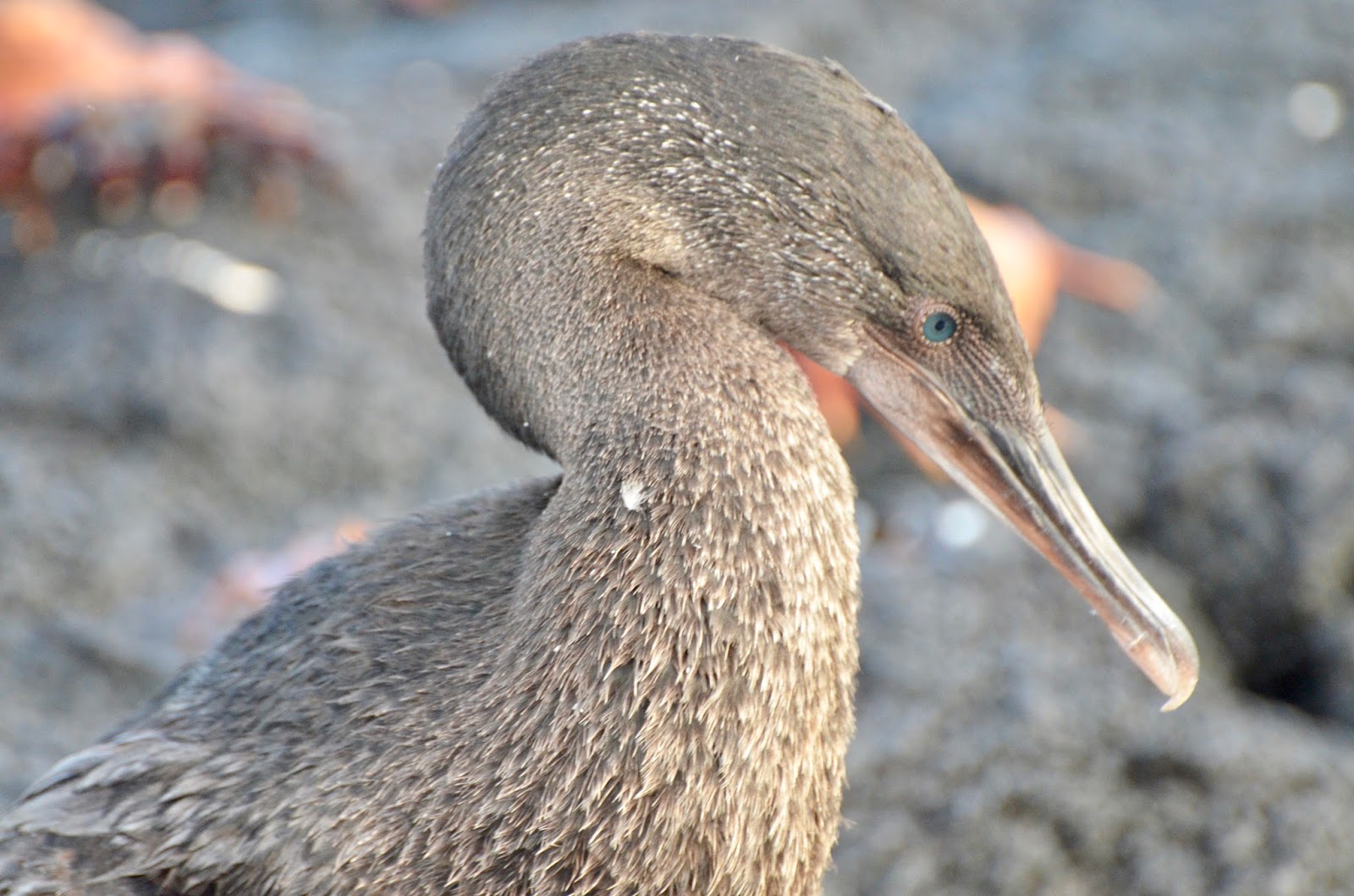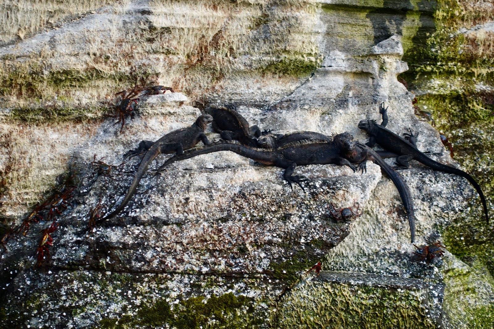 In the afternoon after the repositioning of the ship to Fernandina Island, Punta Espinoza provided the chance to see major concentrations of marine iguanas. They were literally everywhere, you had to be careful not to step on them by accident! Also a flightless cormorant was seen in action, hopping from one rock to another. Also there were many sea lions on the beach, cuddling up with each other.